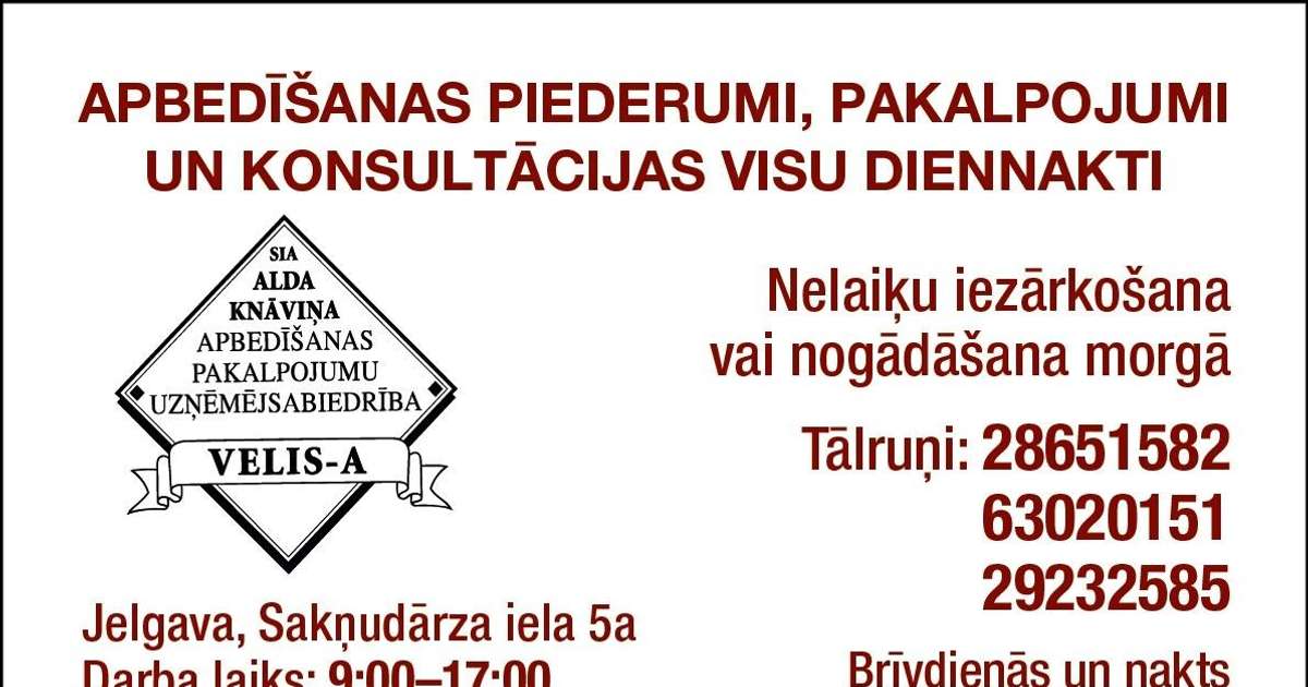 Артем Маракаев (1993 г.р.) – проводы 4 апреля в 10.30 на кладбище Межа; Андра Кулмане (1979 г.р.) – проводы 4 апреля в 12.00 на кладбище Зандеру Аусма Лейте (1935 г.р.) – проводы 4 апреля в 13.00 на кладбище Межа;
