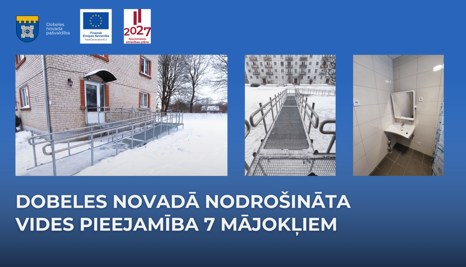 Eiropas Savienības Atveseļošanas un noturības mehānisma (Atveseļošanas fonds) projekta “Atbalsta pasākumi cilvēkiem ar invaliditāti mājokļu vides pieejamības nodrošināšanai Dobeles novadā” (Nr. 3.1.2.1.i.0/2/24/I/CFLA/001) ietvaros ir nodrošināta vides pieejamība 7 mājokļiem, pielāgota cilvēkiem ar kustību traucējumiem, tādejādi uzlabojot viņu ikdienas dzīves kvalitāti, nodarbinātības iespējas un pieejamību pakalpojumiem. Kopumā projekta ietvaros, Dobeles novadā tika izbūvētas divas...
