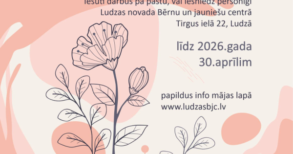 Veicināt bērnu un jauniešu radošo pašizpausmi, attīstīt spēju radoši paust savu attieksmi pret ģimeniskām vērtībām un Mātes dienas svinēšanas tradīciju, kā arī stiprināt radošās darbības nozīmīgumu Ludzas novadā. Zīmējumi, gleznojumi vai grafika brīvā formātā, nepārsniedzot A4 formātu, par tēmu "APSVEIKUMS MANAI MĪĻAI MĀMIŅAI". Ludzas novada Bērnu un jauniešu centrs, Ludzas novada pašvaldība. Ludzas novada bērni un jaunieši līdz 18 gadu vecumam. Konkursa laureāti kopā ar savām māmiņām tiks...