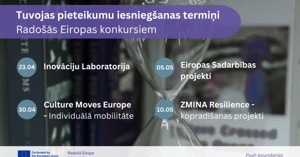 Radošās Eiropas Kultūras un Starpnozaru atzaru konkursu pieteikumu iesniegšanas termiņi strauji tuvojas: Aicinām kultūras un radošo nozaru organizācijas, kas ir ieinteresētas starptautiskajā sadarbībā un vēlas pieteikties Radošās Eiropas projektu konkursiem, sazināties ar Radošās Eiropas biroju Latvijā, rakstot uz e-pastu radosaeiropa@km.gov.lv. Radošās Eiropas birojs Latvijā ir oficiālais Programmas kontaktpunkts, kas sniedz aktuālāko informāciju par Programmas jaunumiem, palīdz atrast...