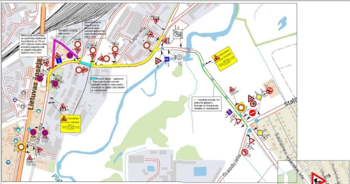 jelgavniekiem.lvPiebraukšana Lapu ielai un minētajam iebraucamajam ceļam turpmāk tiks nodrošināta no tilta pār Platoni puses. Savukārt piekļuve īpašumiem Bauskas ielā 1 pa koplietošanas ceļu tiks nodrošināta no Lietuvas šosejas puses, izņemot ūdensvada, kanalizācijas un ceļa seguma izbūves laikā, kad iedzīvotāju un uzņēmēju satiksmes nodrošināšanai tiks izveidots pagaidu ceļš. Gājēju kustība slēgtajā posmā tiks organizēta pa vienu ielas pusi, norobežojot to no brauktuves ar vadstatņiem. Arī turpmāk apbraukšana...