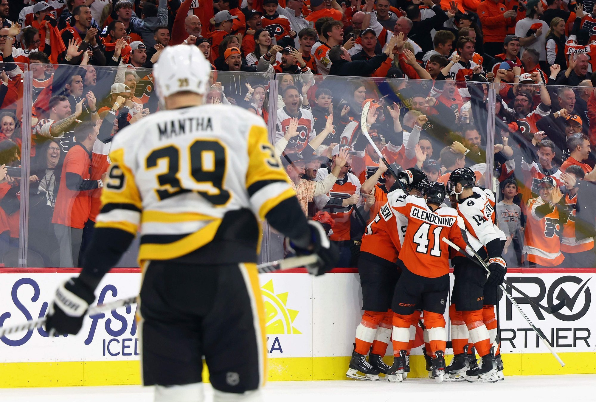 NHL Stenlija kausa izcīņas pirmās kārtas sērijas trešajā spēlē Artūra Šilova pārstāvētā Pitsburgas "Penguins" komanda viesos ar 2:5 piekāpās Rodrigo Ābola Filadelfijas "Flyers", sērijā līdz četrām uzvarām nonākot iedzinējos ar 0-3. Šilovs arī sērijas trešajā mačā palika uz rezervistu soliņa, bet Stjuarts Skiners atvairīja 24 no 28 metieniem jeb 85,70%. Viņu kolēģis Filadelfijas komandas vārtos Daniels Vladāržs tika galā ar 28 no 30 metieniem jeb 93,30%. Spēles 5. minūtē pēc lieliskas izspēles...