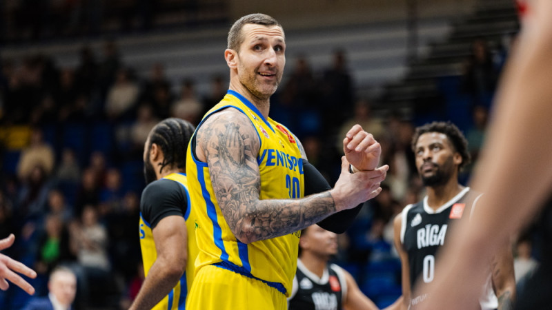 Sērijas pirmajā spēlē Rīgā ventspilnieki ļoti labu turējās pretī galvaspilsētas klubam pusstundu. Vēl pēdējās ceturtdaļas sākumā Amands Urkis pievilka ventspilniekus līdz viena punkta atstatumam, panākot 65:66, bet Kērtisa Holisa un Daira Bertāna trāpītie trīs punktu metieni nolauza spēli par labu "VEF Rīga" vienībai. Ar beigu rezultātu 87:76 rīdzinieki tika pie pirmās no trīs nepieciešamajām uzvarām. Rezultatīvāko pienesumu Vefiņam punktu gūšanā deva Kērtiss Holiss, iekrājot 18 punktus....