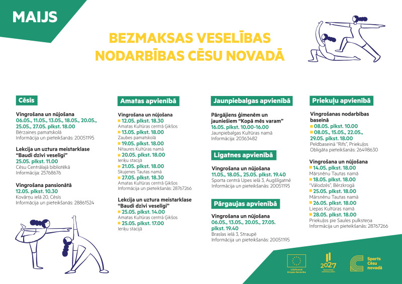 Veselību veicinoši bezmaksas pasākumi maijā