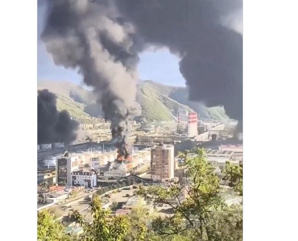 Ukrainas dronu trieciens: Tuapses naftas pārstrādes rūpnīca liesmās